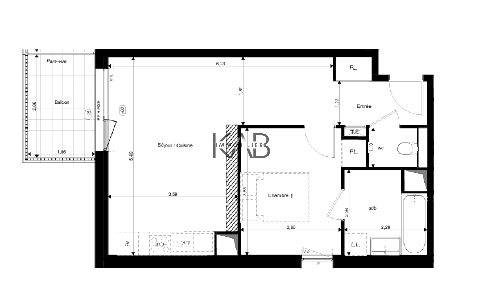 Au 1er étage, découvrez cet appartement 2 pièces d'une superficie de 45m2 qui se compose : d'une entrée avec placard intégré, une pièce de vie de 24m2 avec cuisine ouverte à équiper bénéficiant d'un accès vers un balcon de 5m2, un dégagement nuit, un WC indépendant, une chambre de 10m2 et ,une salle de bains dotée d'une baignoire et d'un meuble vasque en céramique.
