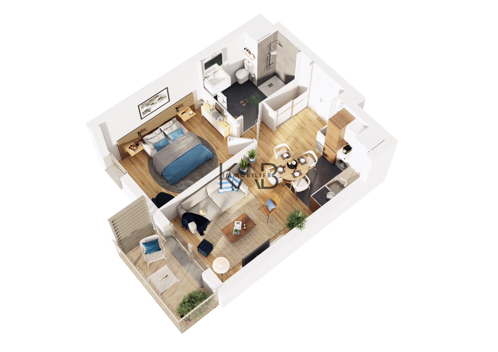 Au sein d'un immeuble sécurisé à l'architecture contemporaine, découvrez cet appartement 2 pièces d'une superficie de 41.1m² qui se compose d'une pièce de vie de 21.5m² avec cuisine ouverte à équiper et un accès vers un balcon de 4.7m², une chambre de 12m², une salle d'eau avec douche, un meuble vasque ainsi qu'un WC.