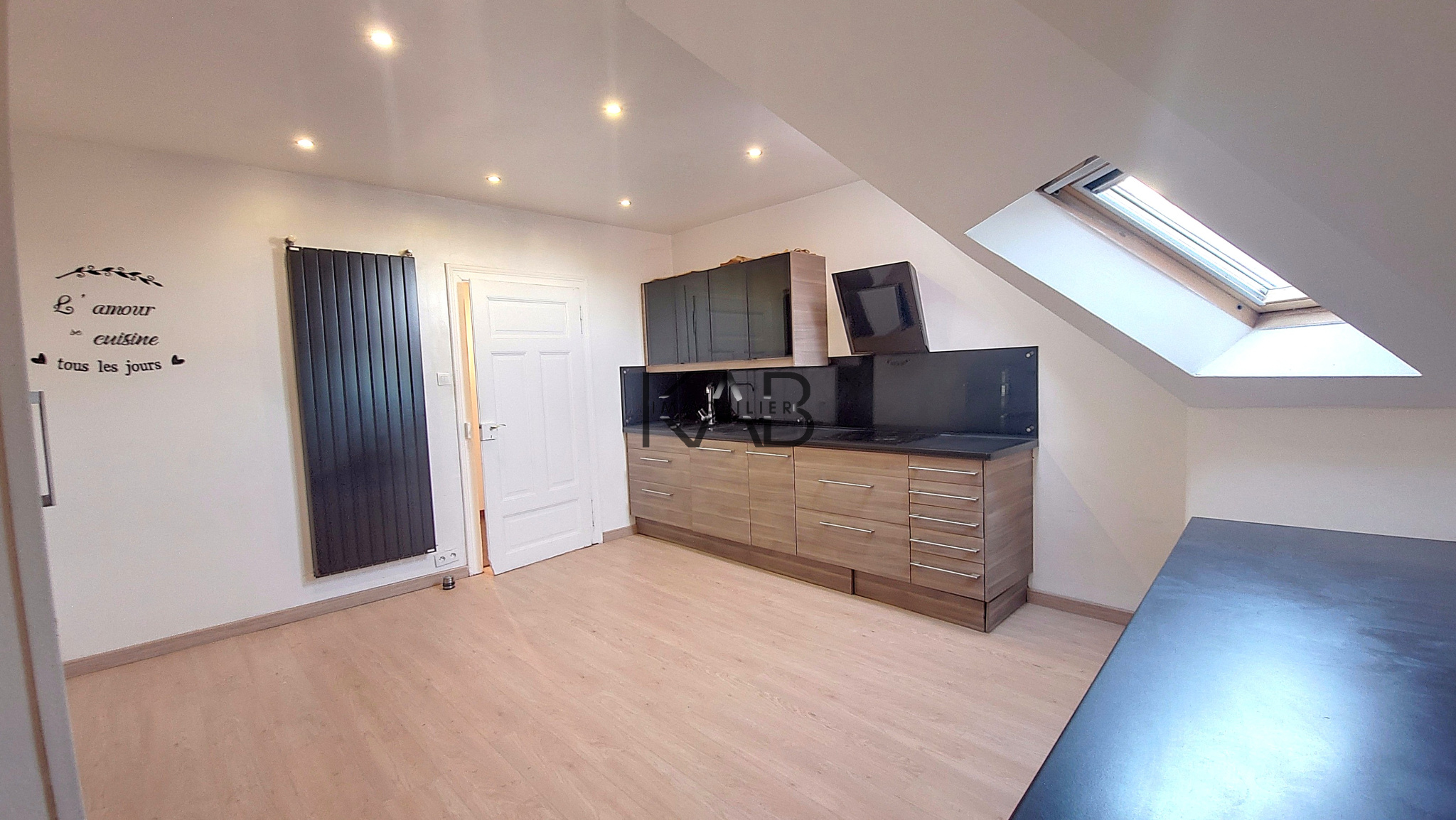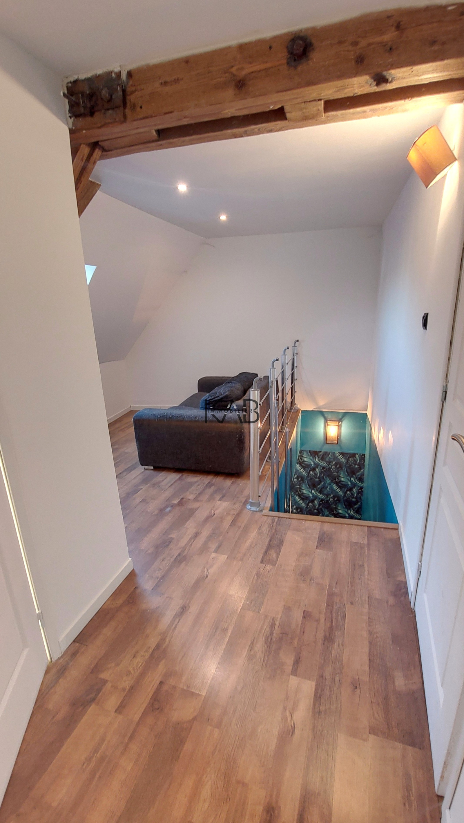 A l'étage: une partie mezzanine, une salle d'eau avec wc et 2 chambres (ou une chambre et un bureau) de 20m2 en carrez et de 15m2 au sol et 8.73m2 en carrez.